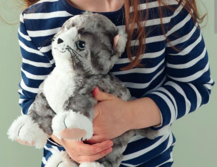 Ce chaton tout doux avec ses grands yeux et sa tête amusante est parfait pour jouer, faire des câlins et transporter partout. Sa taille est idéale, même pour les plus jeunes enfants.
