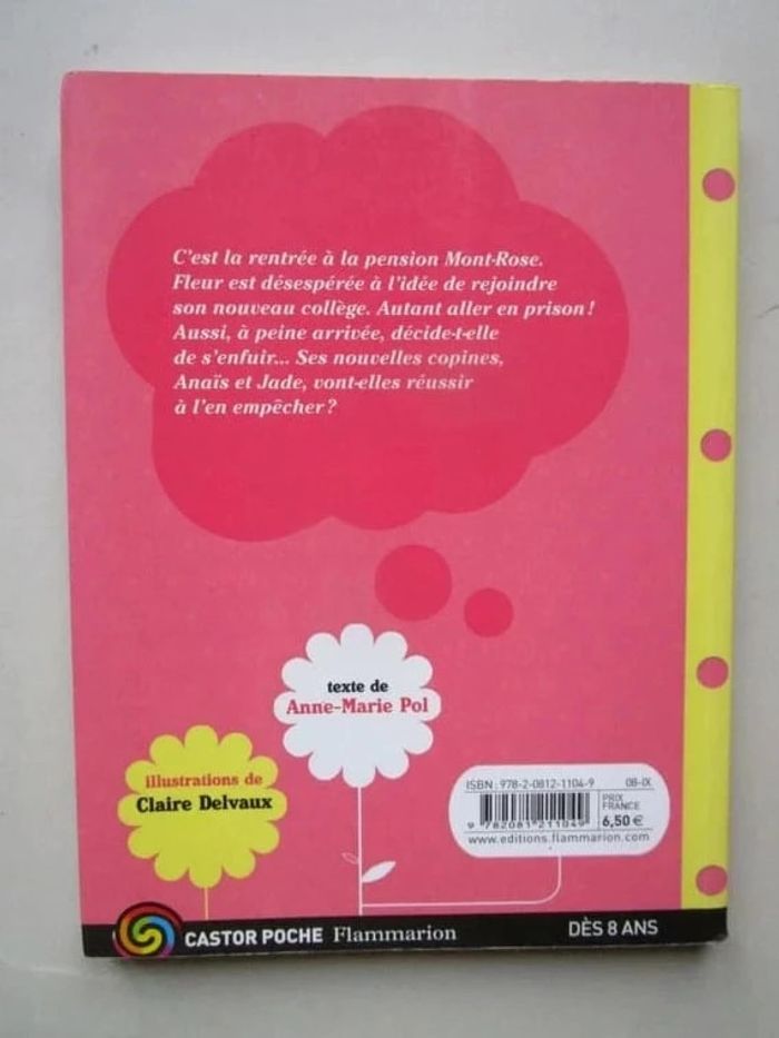 C'est la rentrée à la pension Mont-Rose. Fleur est désespérée à l'idée de rejoindre son nouveau collège. Autant aller en prison ! Aussi, à peine arrivée, décide-t-elle de s'enfuir... Ses nouvelles copines, Anaïs et Jade, vont-elles réussir à l'en empêcher ? Éditeur ‏ : ‎ PERE CASTOR 96 pages Âge de lecture ‏ : ‎ 9 - 11 ans Dimensions ‏ : ‎ 13.8 x 0.9 x 18 cm Livre en très bon état Je vends d'autres livres de la même collection #phil_peg_les3copines #3copines #amitié #rentrée #collège #déménagement