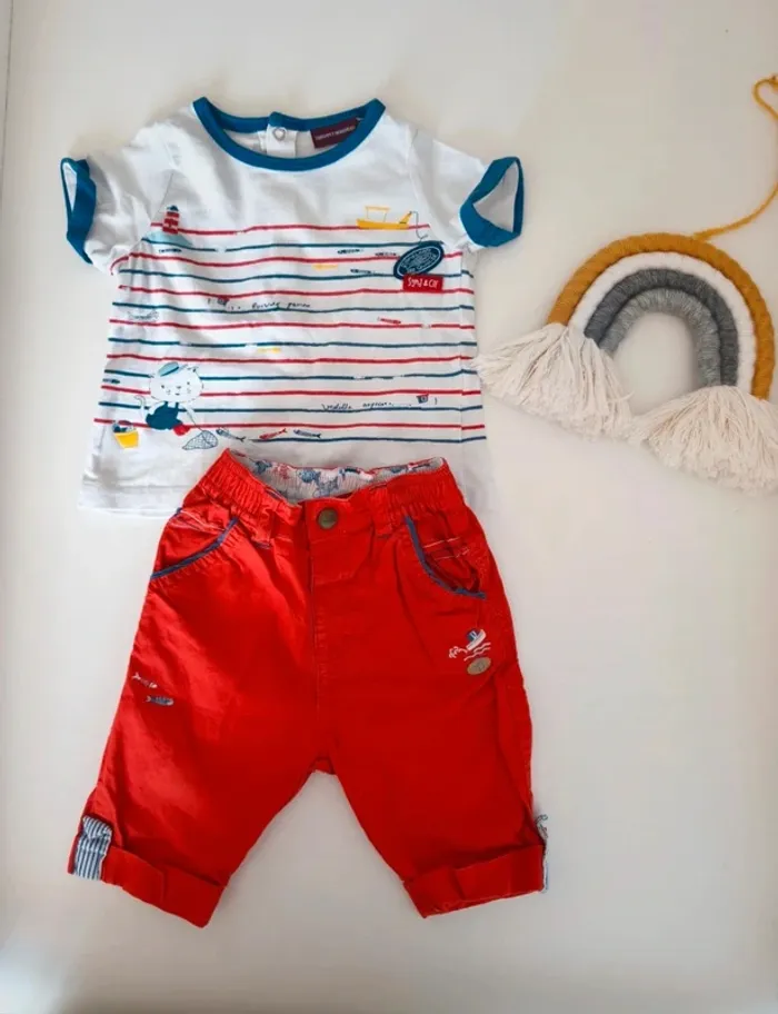 Tous mes articles bébé ici #ldurabebe ou classés par taille dans à propos Tenue 9 mois été Sergent Major avec 1 short bermuda rouge 1 tee shirt rayé blanc bleu rouge Motifs de la mer (bateau, poissons ...) Collection Sardines de qualité Maison non fumeur et sans animaux Envoi possible le jour même avec mondial Relay ou Chronopost ou remise en main propre sur Saleilles #ldura9mois