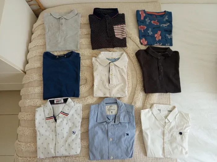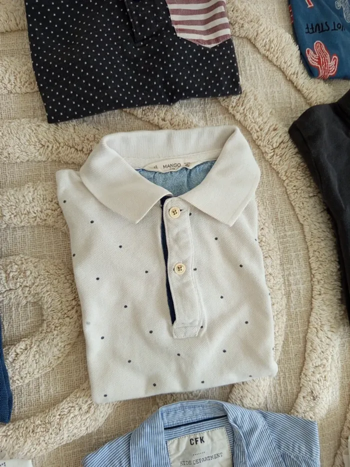 Polo manches courtes blanc à pois Mango 5/6 ans en bon état