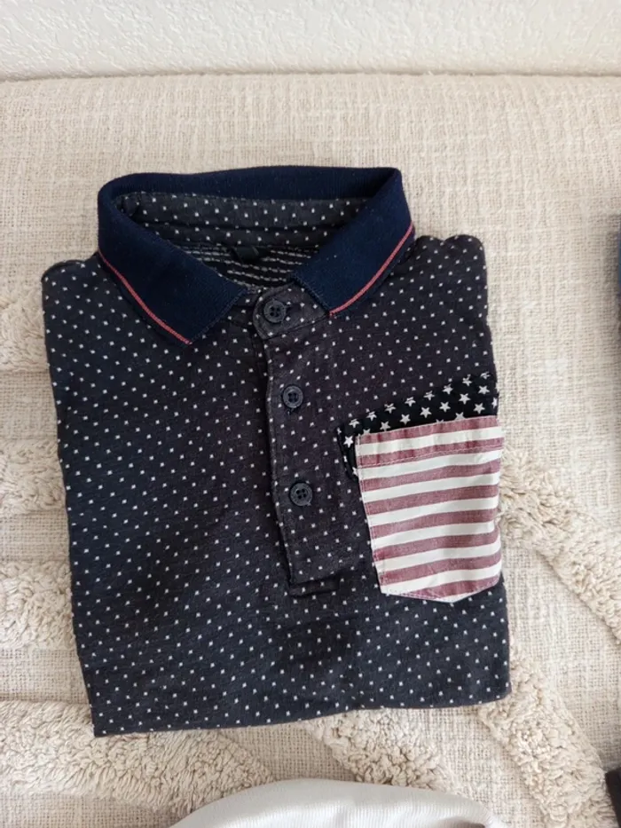 Polo manches courtes gris foncé à pois IKKS 6 ans en bon état