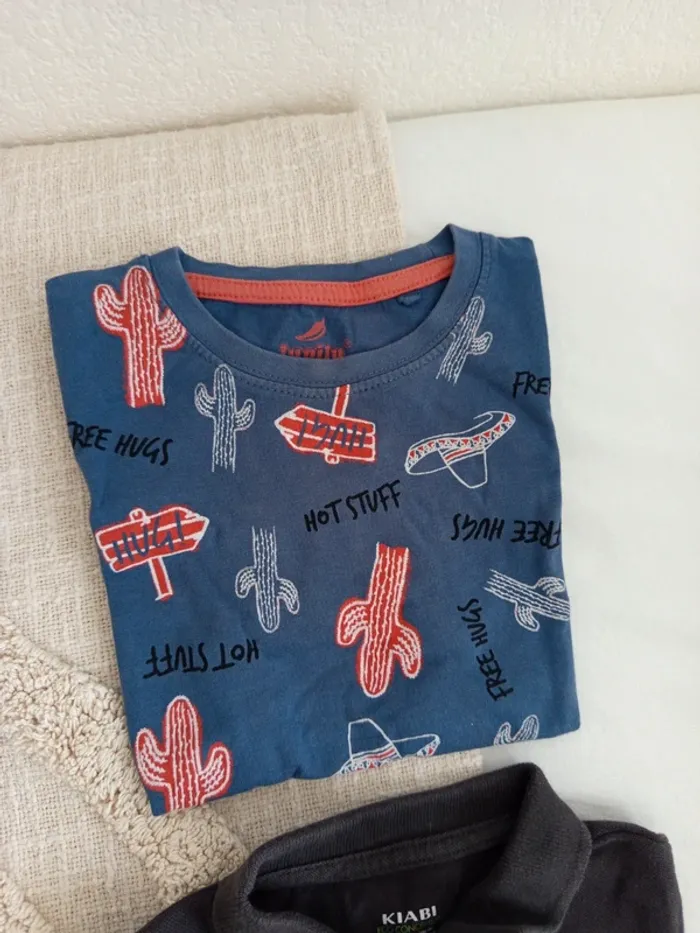 T-shirt manches courtes bleu motifs cactus Lupilu 4/6 ans en très bon état