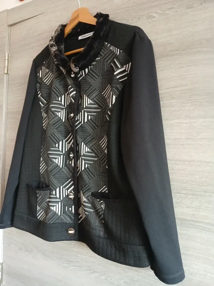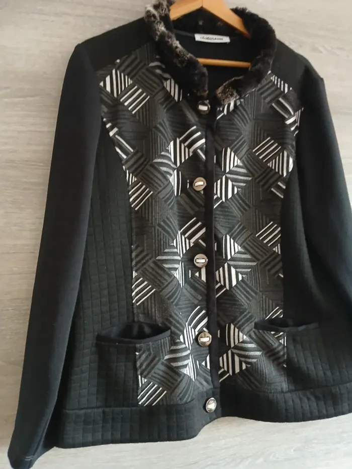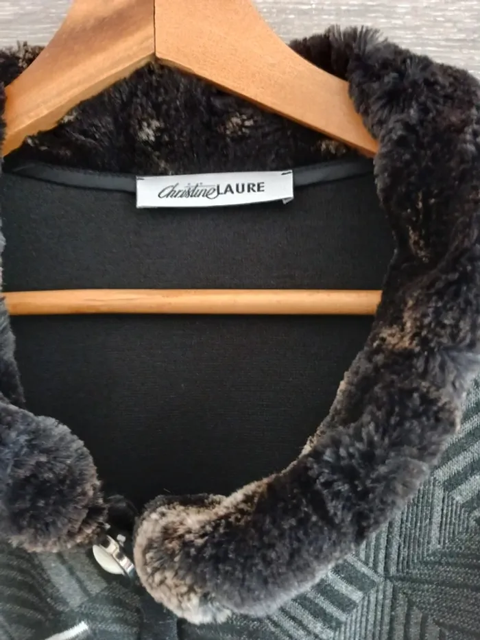 Veste noire imprimé avec col fausse fourrure Taille 3