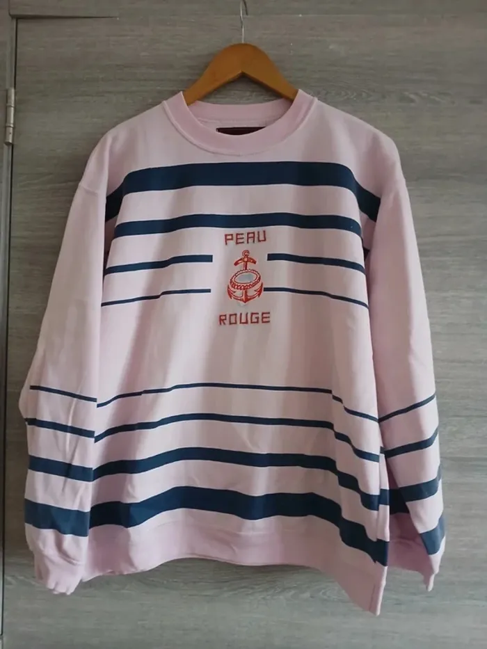 Sweat vintage à rayures avec broderie Taille XL Made in France