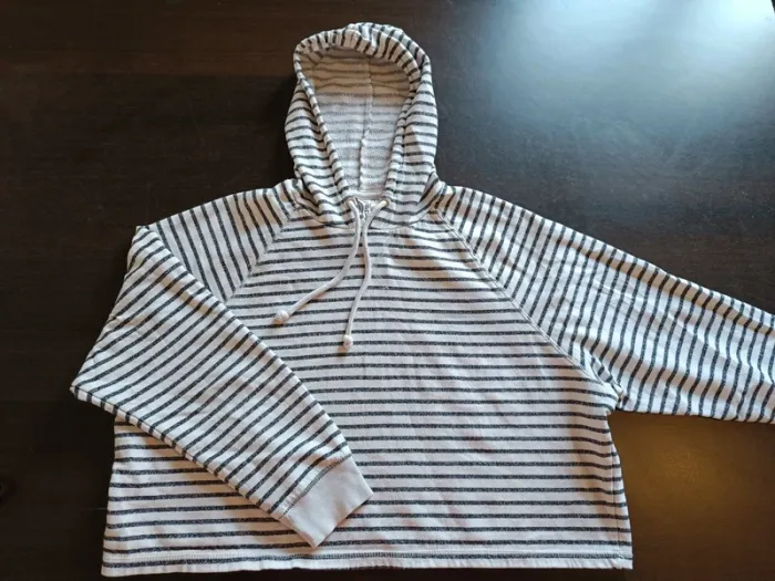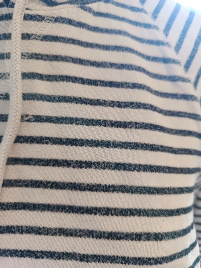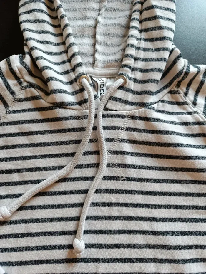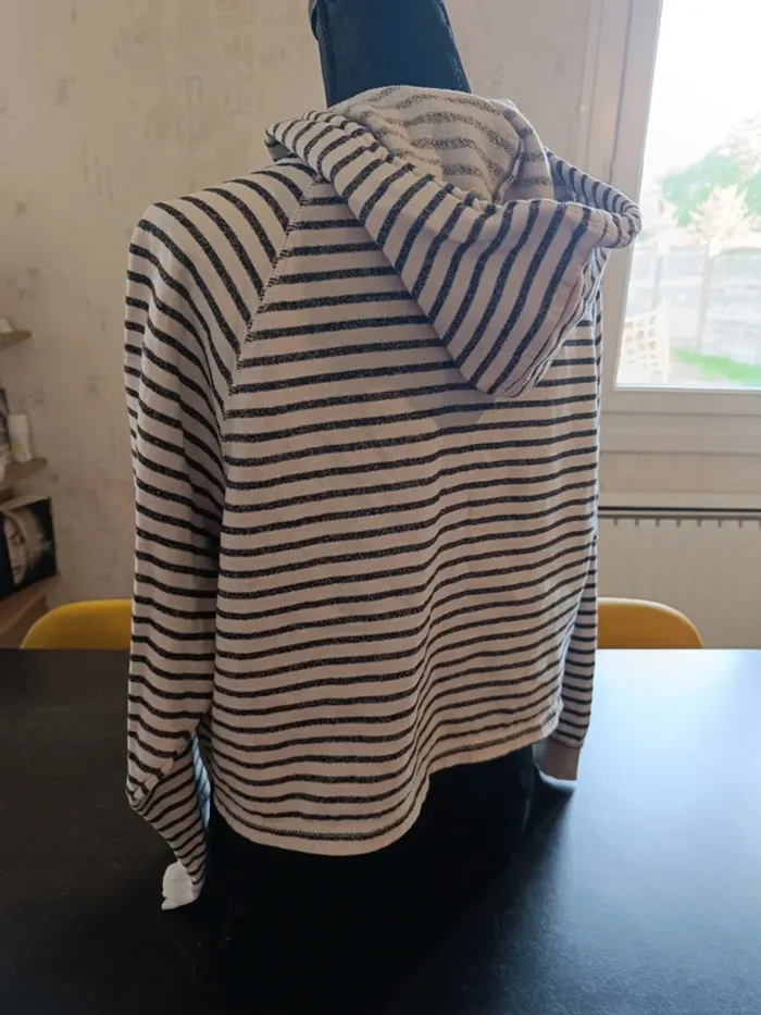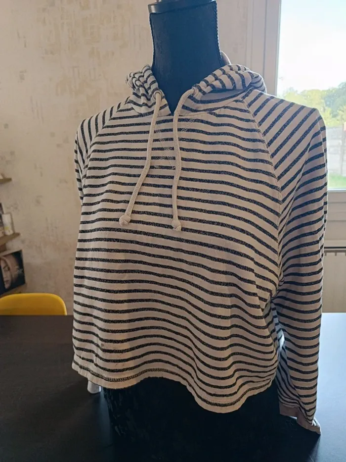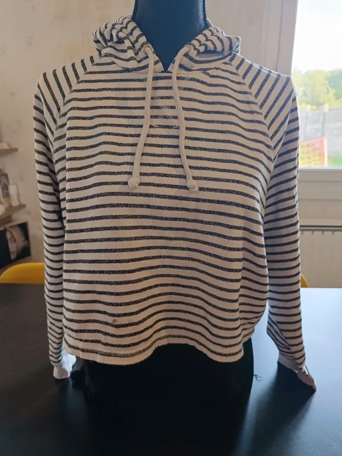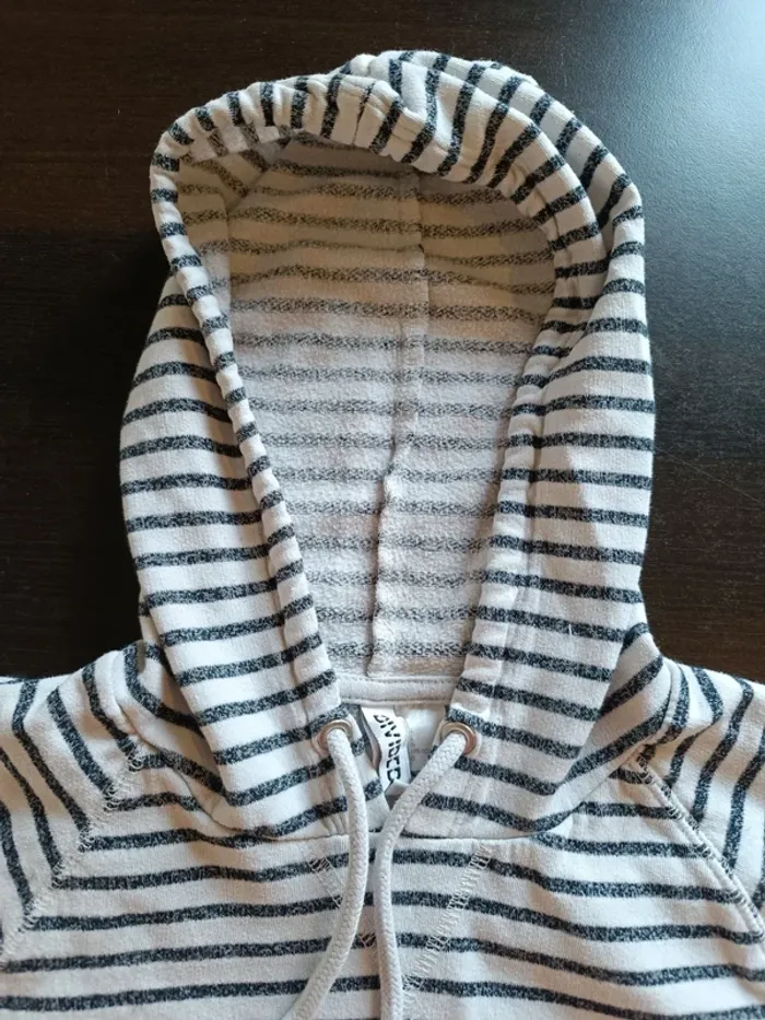 Sweat court DIVIDED Rayé bleu & blanc Capuche 56% Coton & 44% Polyester TAILLE L BON ETAT Allez voir mes autres ventes!
