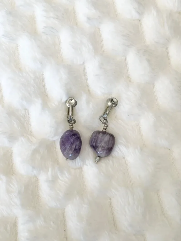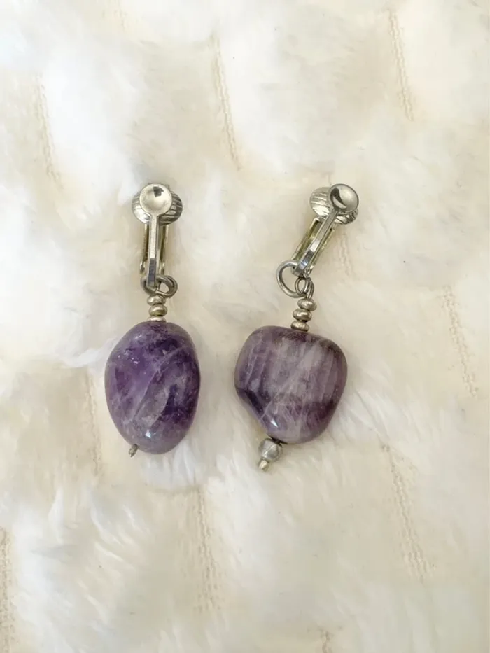 Boucles d’oreilles pierres violettes Très bon état #celdjibijoux pour voir mes autres bijoux, réduction sur lots