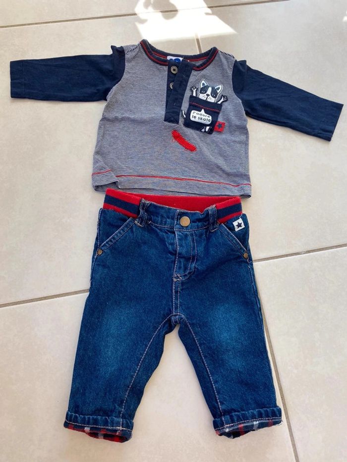 Ensemble pantalon jean + tee shirt Bon état Taille 3 mois #marine60700_3mois #3mois #garçon