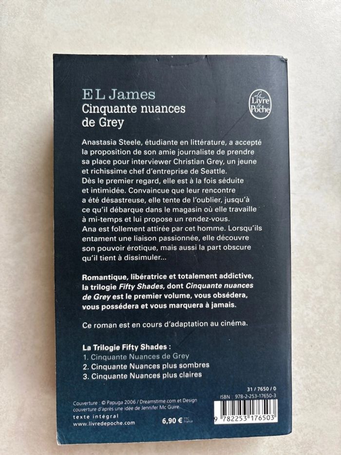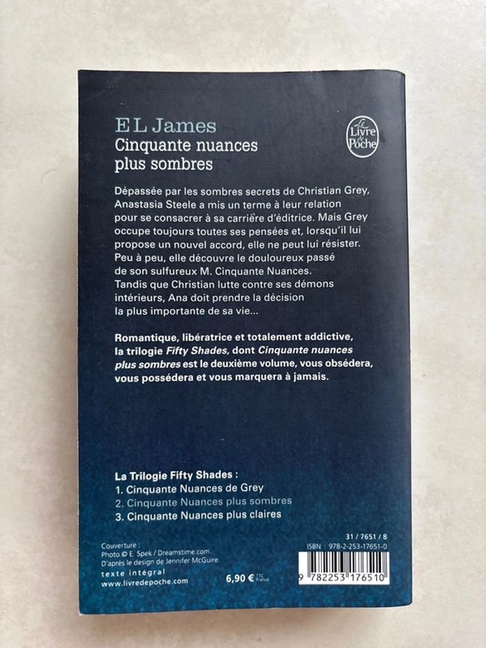 Cinquante nuances plus claires Cinquante nuances plus sombres Cinquante nuances de grey Très bon état sauf un un peu abîmé sur la tranche voir photo