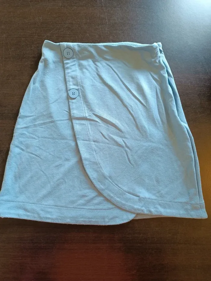 Jupe KIABI Bleue Effet portefeuille Fermée par zip sur 1 côté 70% Viscose, 27% Polyester & 3% Elasthanne TAILLE 14 ANS (XS) TRES BON ETAT Allez voir mes autres ventes!