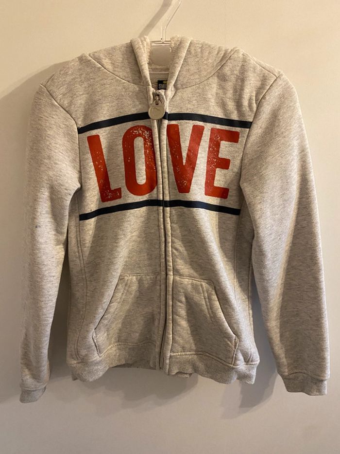 Sweat-shirt zippé Bon état Toute petite tache sur la manche (voir photo) Taille 14 ans / 158 cm