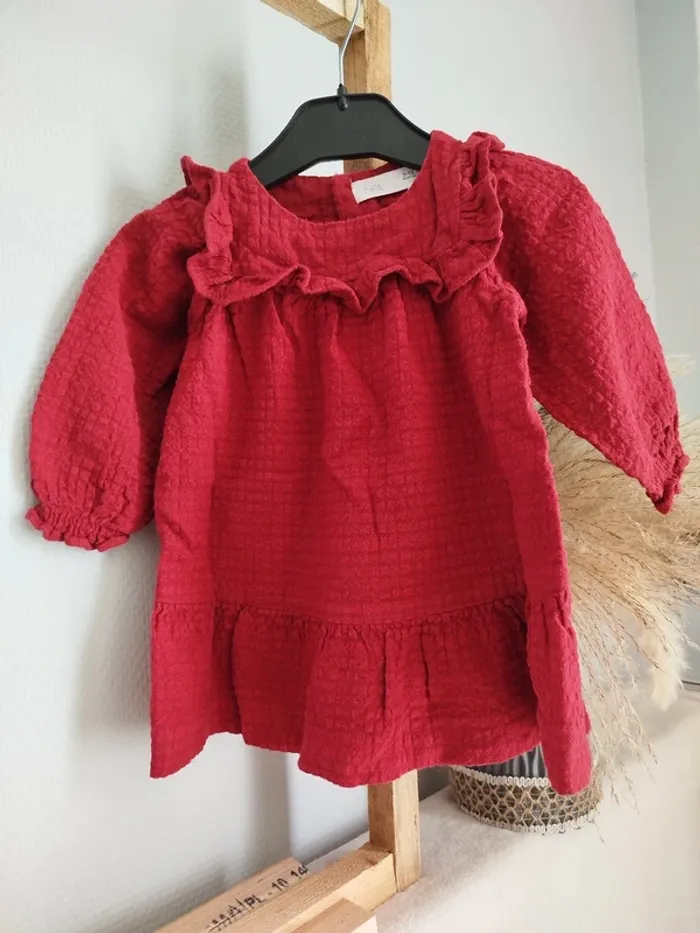 Robe Zara 12 mois Gaze Coton rouge