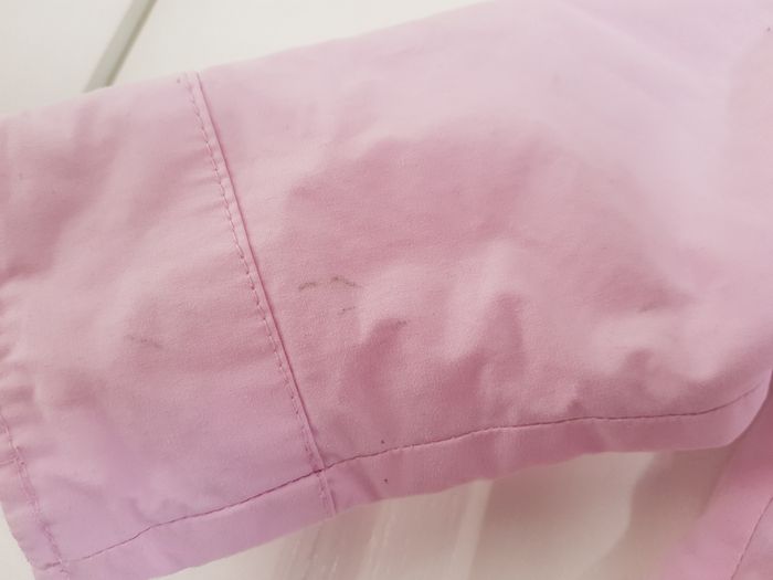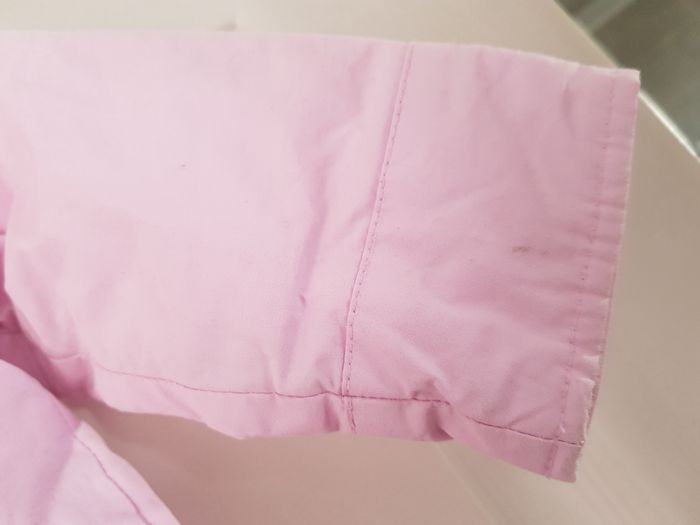 Fermeture zippée Boutons Pression 2 poches Manches retroussables Tissu principal et doublure : 100% Coton Doublure manches et garnissage : 100% Polyester Bon état : Quelques petites tâches discrètes sur les manches (voir photos) #12moisfilleliloumf