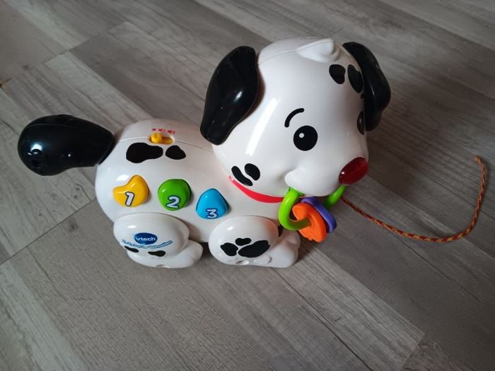 Chien qui ce promène, chante,parle. Le nez s'allume quand il parle.