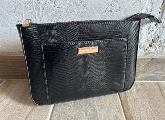 Pochette à main noir, en cuir synthétique, 1 poche zip à l'intérieur 24×17cm En très bon état
