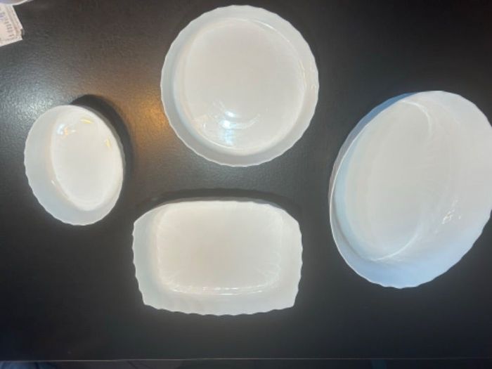 4 plats luminarc 1/ 25 sur 30 cm hauteur 5 2/ 16 sur 22 cm hauteur 5 3/ 25 cm hauteur 4 4/ 28 sur 36 cm hauteur 8