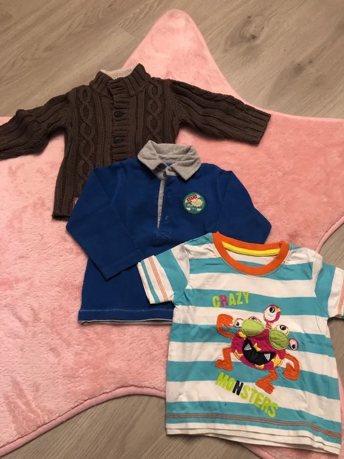 1 gilet avec col doublé polaire toute douce 1 Tee shirt manches courtes 1 polo manches longues Très bon état #lepiaf41_12mois