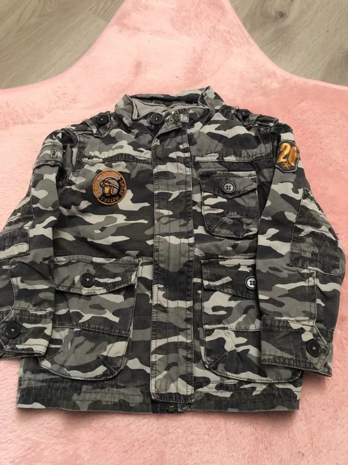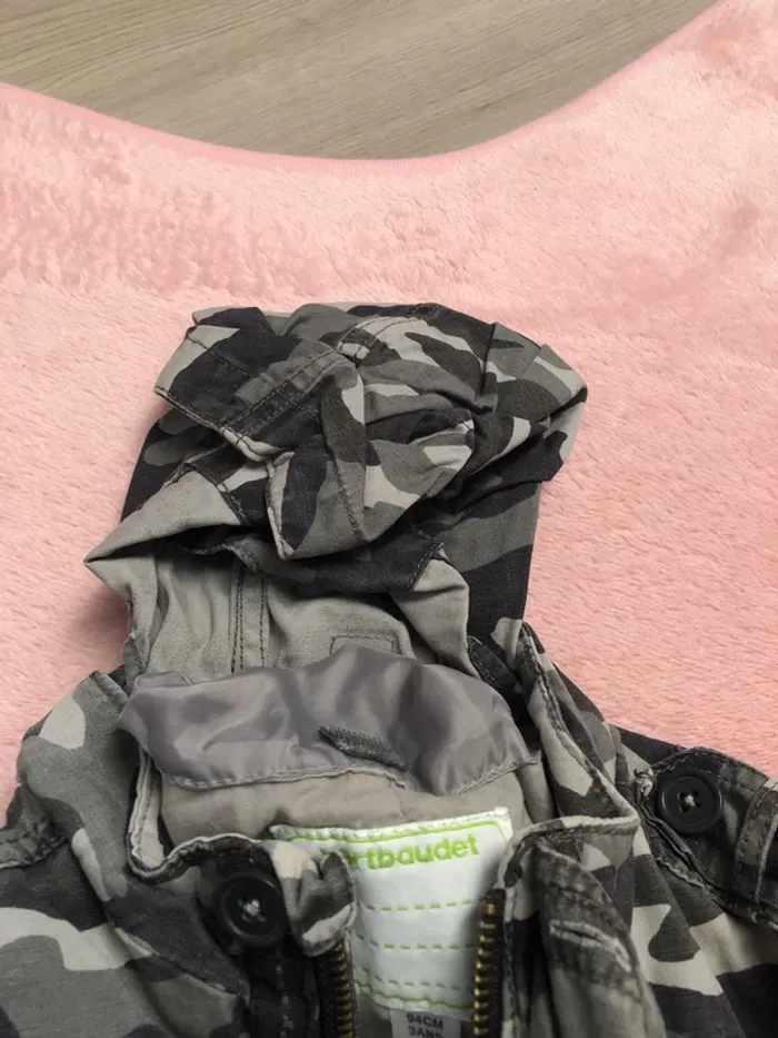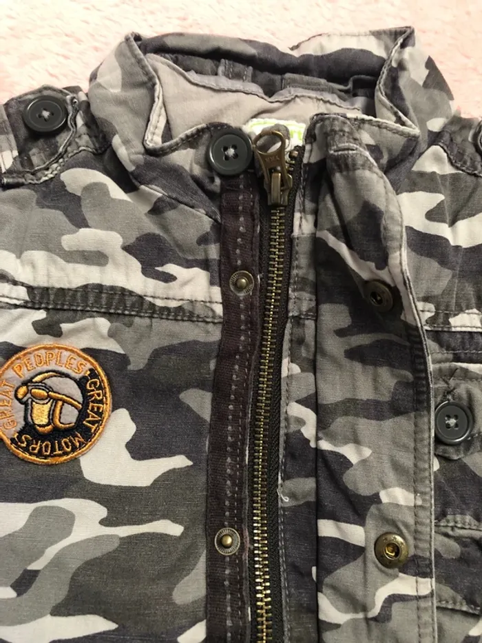 Veste mi saison avec capuche pouvant être cachée dans la doublure col Très bon état, camouflage gris Idéale pour la rentrée !