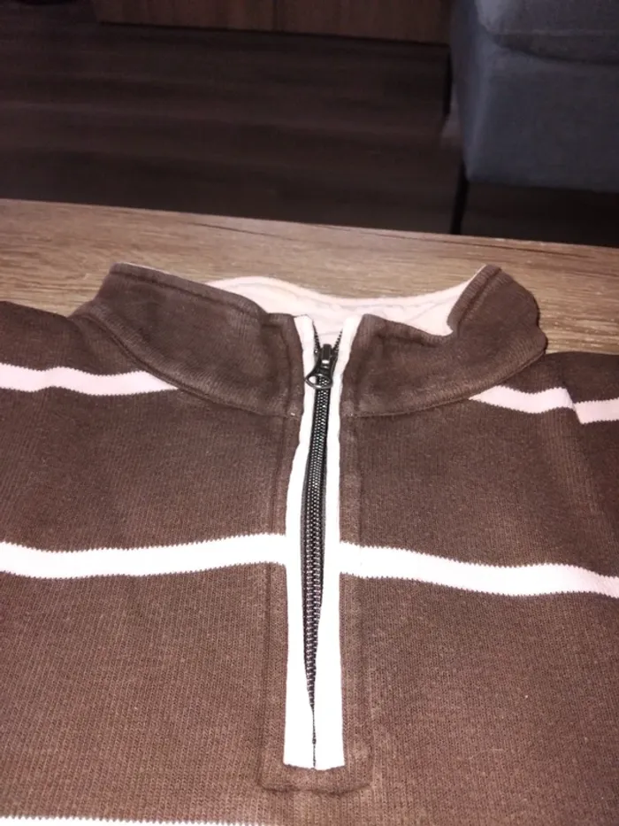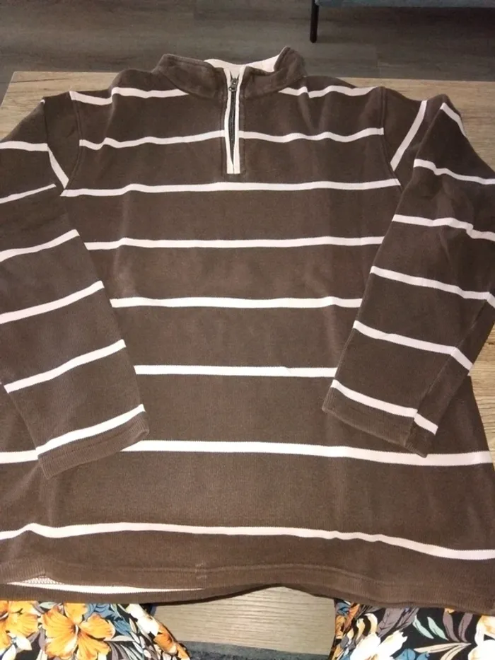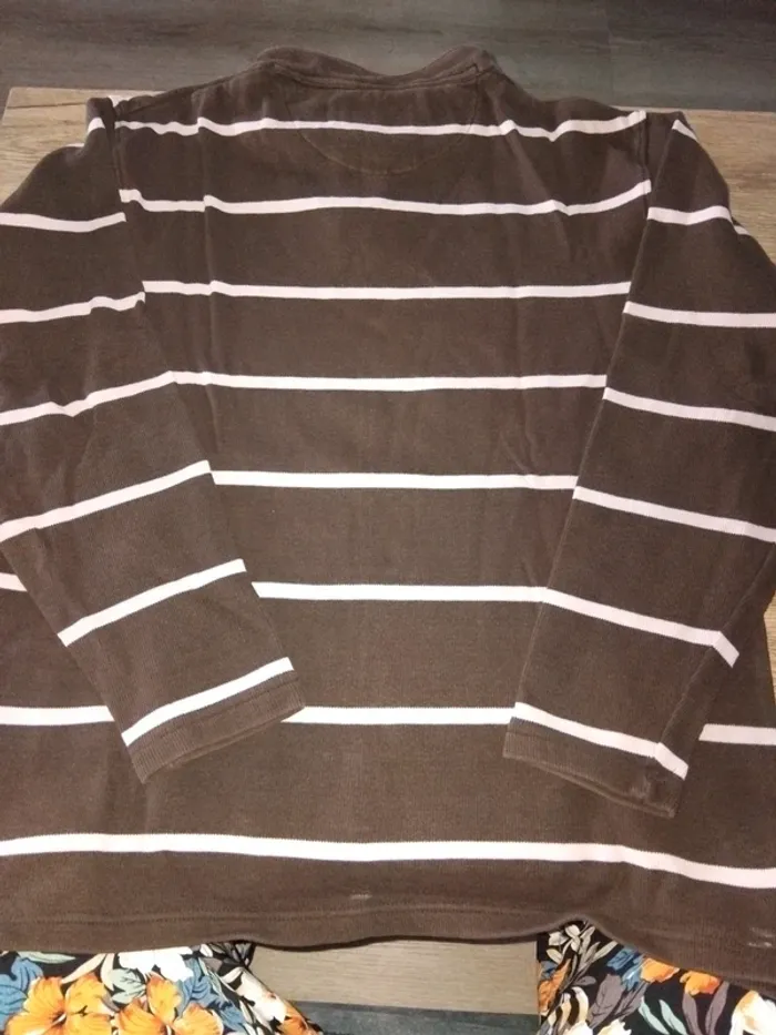 Bonjour, je vends ce pull fin rayé marron et rose de la marque Armand Thiery taille M en très bon état. Lavé maison non fumeur.