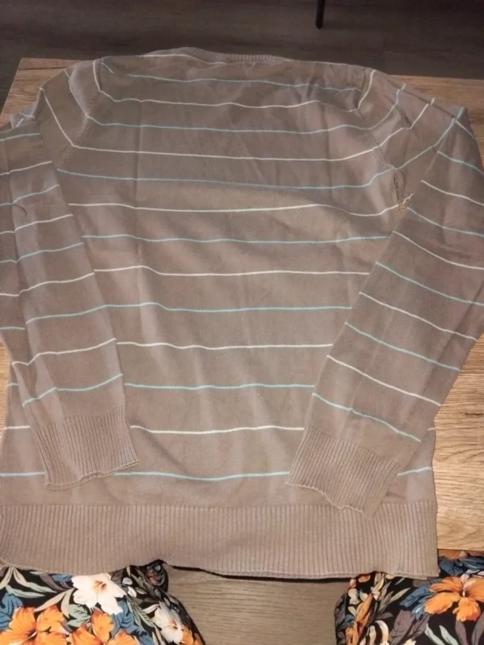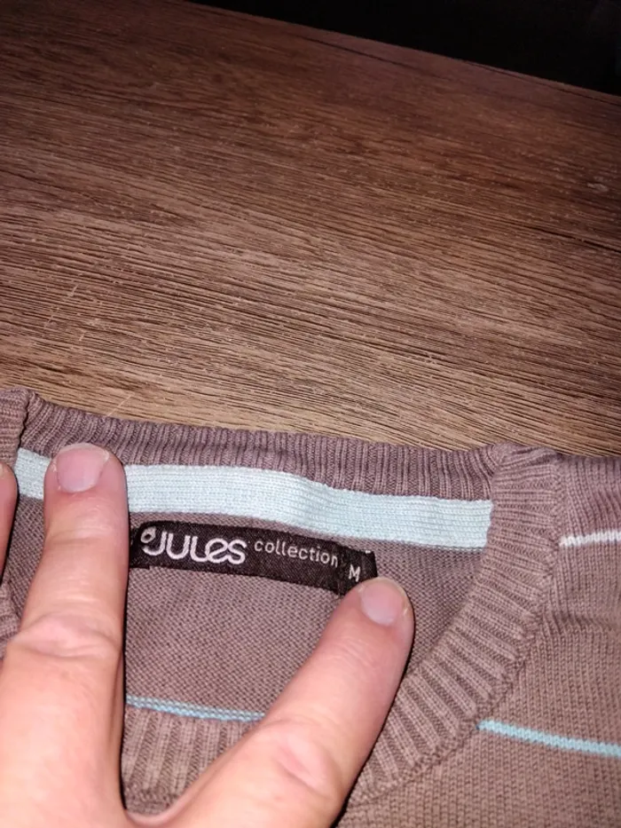 Bonjour, je vends ce pull fin gris et turquoise de la marque Jules taille M en très bon état. Lavé maison non fumeur.