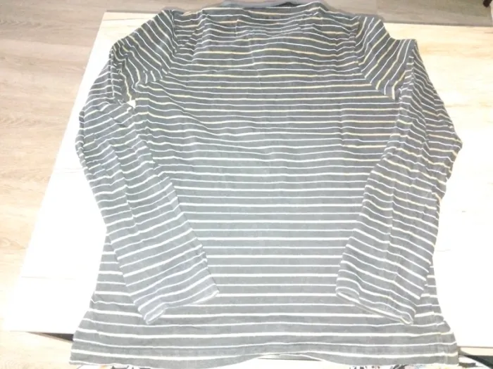 Bonjour, je vends ce polo a manches longues rayé noir beige et blanc de la marque Zara taille M en très bon état. Lavé maison non fumeur.