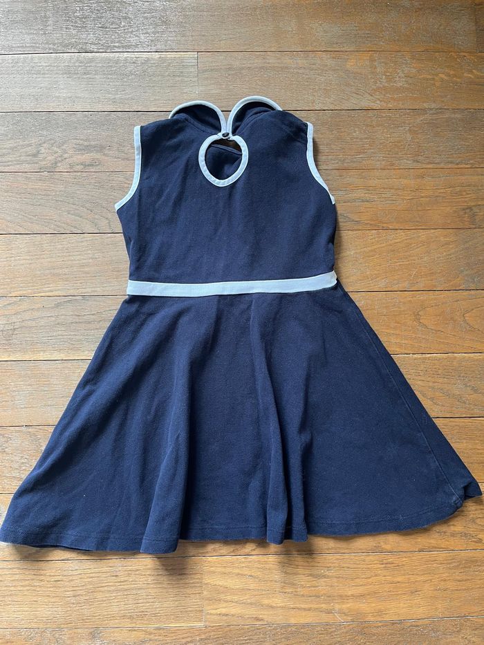 Robe sans manches marine à col claudine, en tissu matière polo Portée quelques fois, très bon état