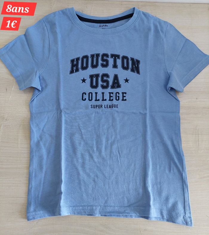 Vends T-shirt manches courtes garçon 8ans Il est en très bon état car très peu mis vu la quantité (43) de t-shirts Maison non fumeur Le prix d'achat est indiqué sur la photo 1