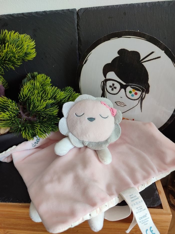 Obaïbi Doudou plat lion rose tender dreams Okaïdi gris noeud rond jambes DD3215 - photo numéro 1