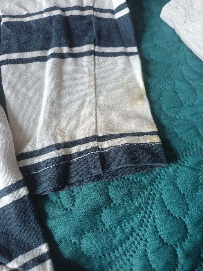 Le blanc c'est un œuf 10 ans il y a des tâches voir photos et le bleu et blanc également c'est noté taille 4 mais c'est 10 . 12 voir photos également pour les tâches