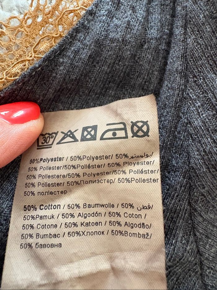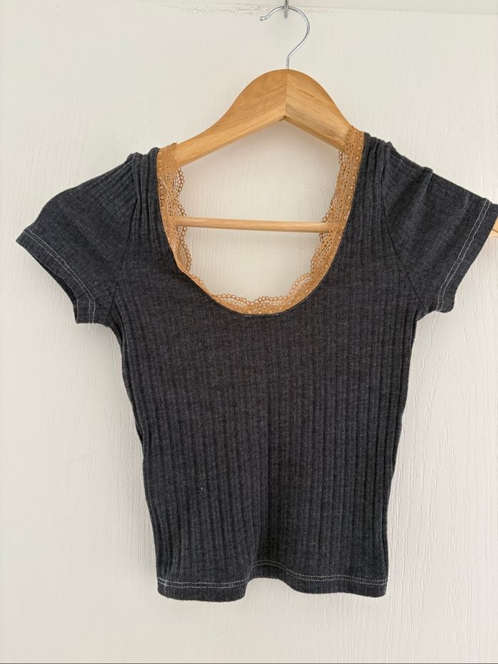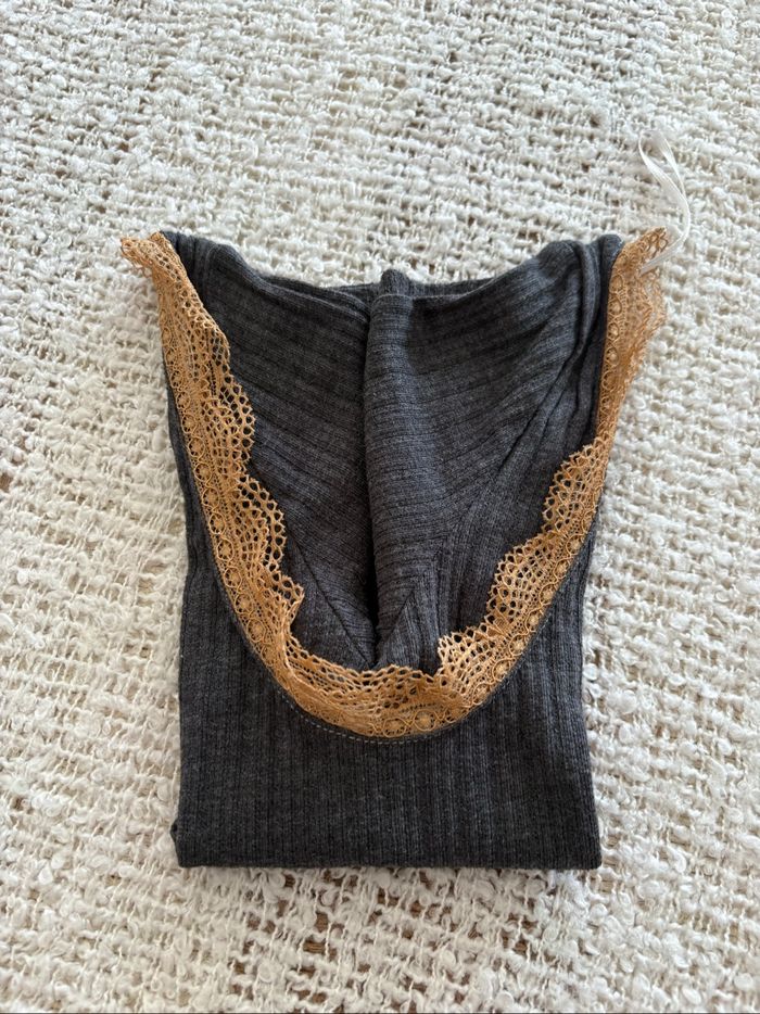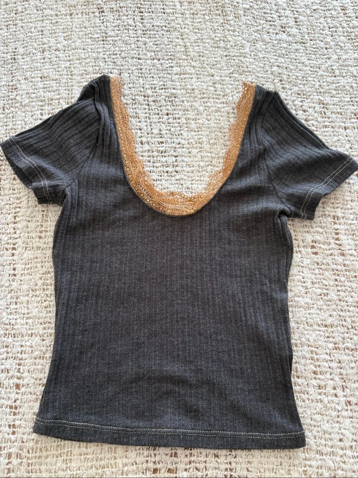 Top gris et dentelle beige « « Pimkie » taille XS TBE Largeur prise sous les aisselles 30 cm Longueur 44 cm #sandra13190femmestailleXS
