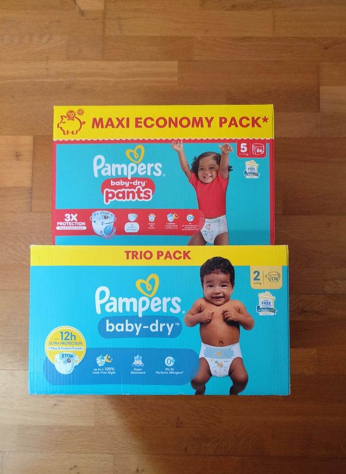 1 trio pack Pampers baby dry taille 2 et 1 maxi economy pack Pampers baby dry pants taille 5