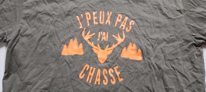 .Tshirt manche courte Motif J'peux pas j'ai chasse Léger défaut sur le devant en bas sur le côté Taille 2XL #carineddiXXLhomme
