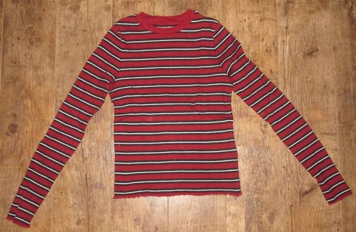 tshirt rayé en taille S ou 16 ans de marque GEMO couleur bordeaux et noir 96% coton et 4% elasthanne en très bon état #melc59229fille16ans #melc59229femmeS