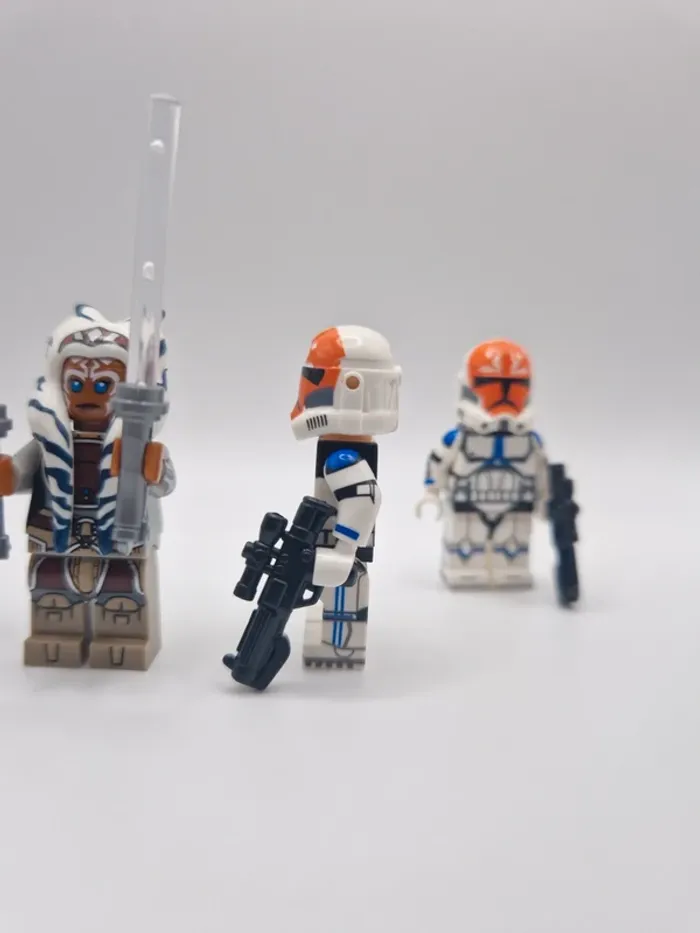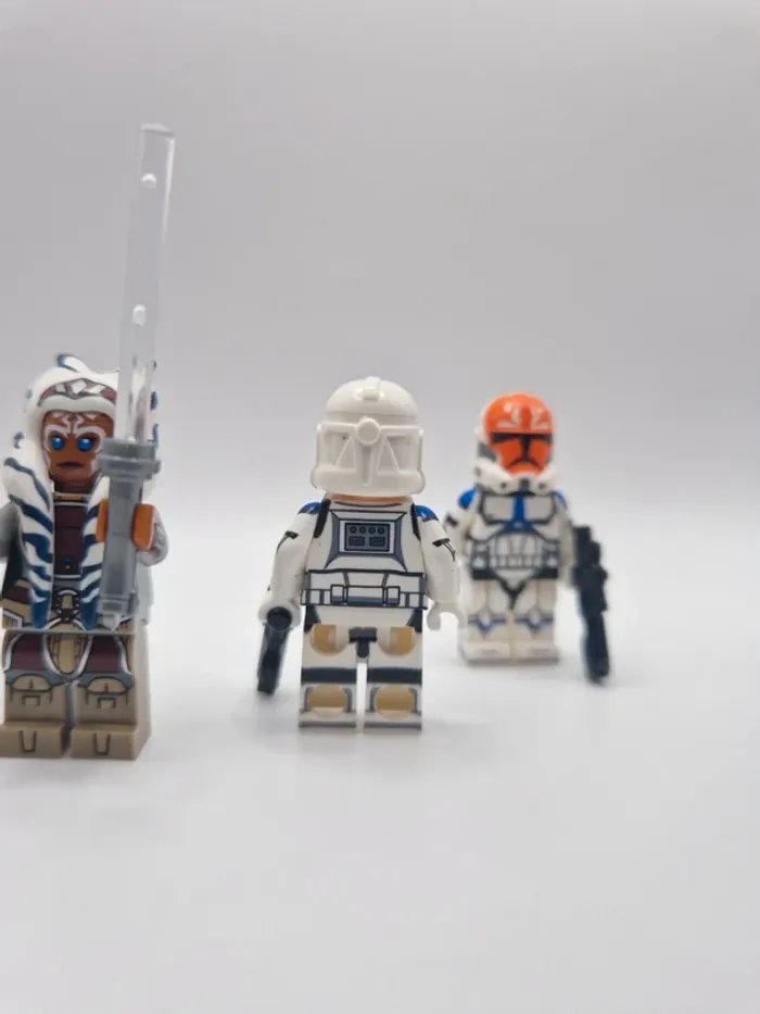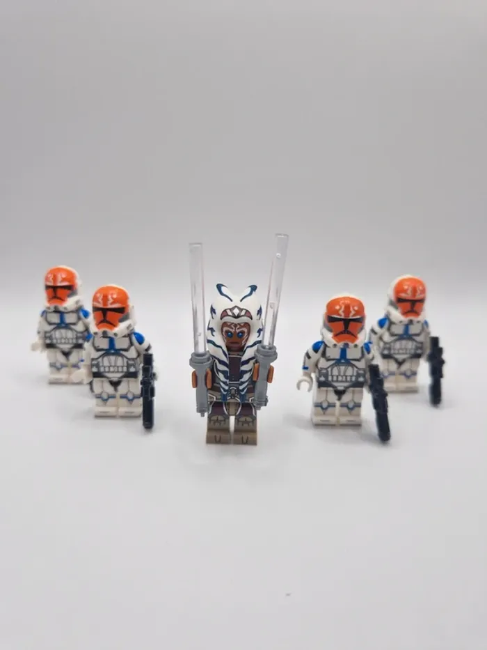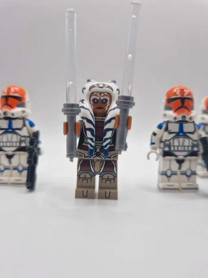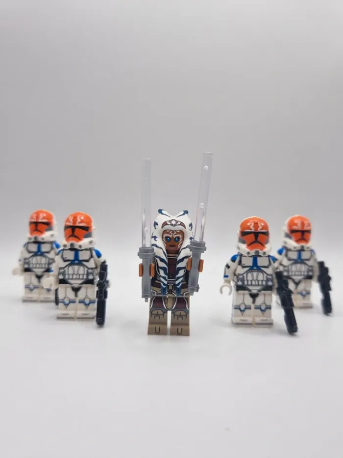 Figurines type lego Jedi Ashoka avec 4 clones de la légion d'Ashoka star wars D'autres figurines disponible en annonce ou sur demande n'hésitez pas à me demander pour la création de lot :) #raph21850starwars