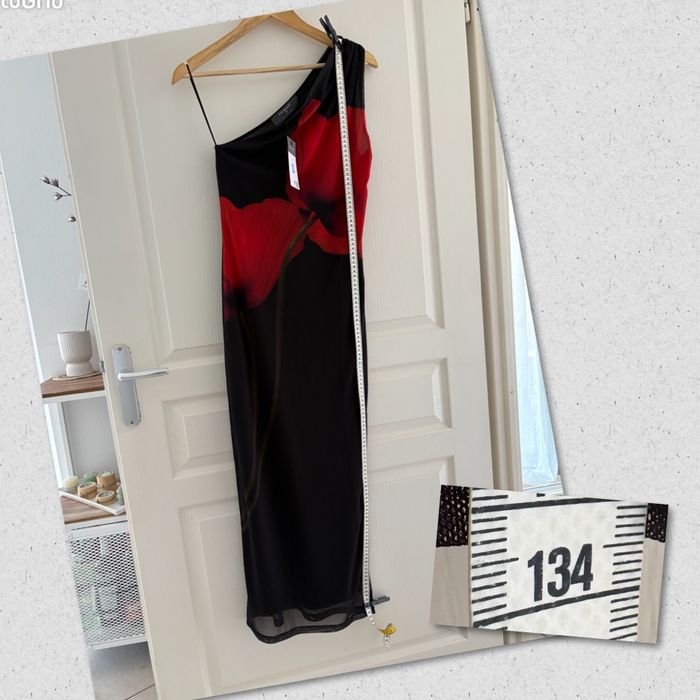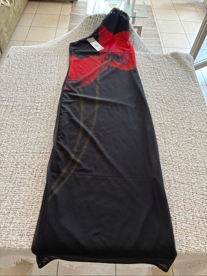 Robe noire et rouge « Primark » épaule dénudée, taille S neuve avec étiquette Longueur 134 cm Largeur prise sous les aisselles 39 cm #sandra13190femmestailleS