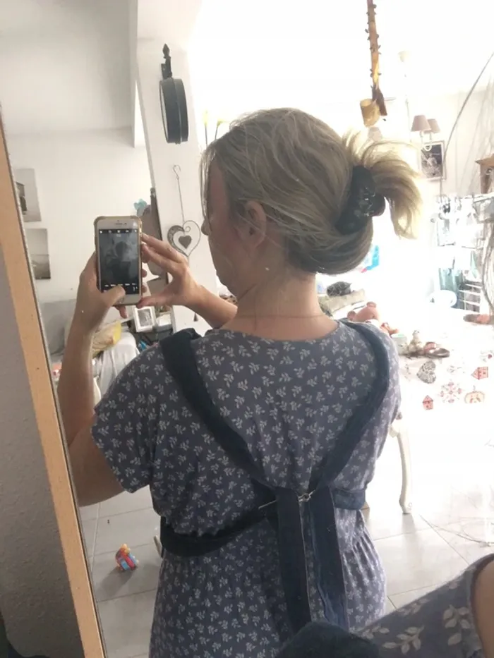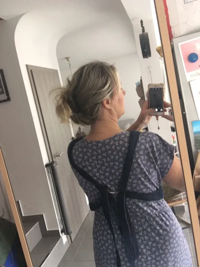 TBE Se ferme dans le dos comme sur la photo Attache fermeture en photo Des sangles de réglage en fonction de la taille Solide et confortable Très simple d’utilisation Lavable Prend peu de place D’autres articles en vente n’hésitez pas à faire un lot ☺️👍🌺