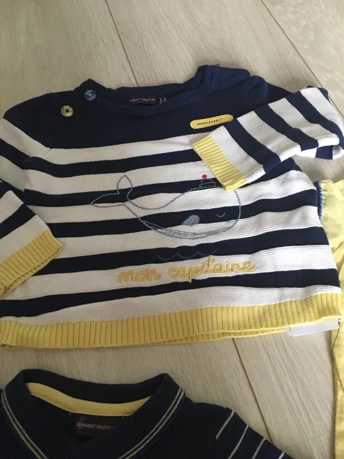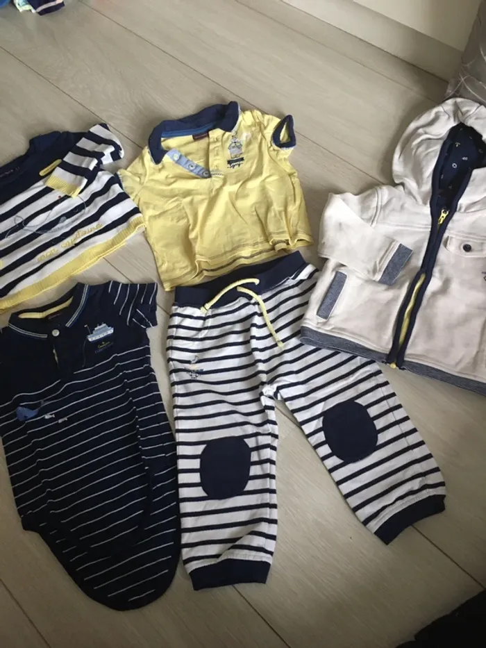 Ensemble coordonné comprenant : Un pantalon Une veste / gilet Un pull Un polo Un body Très mignon 🥰 Parfait état D’autres articles en vente n’hésitez pas à faire un lot ☺️👌🌺
