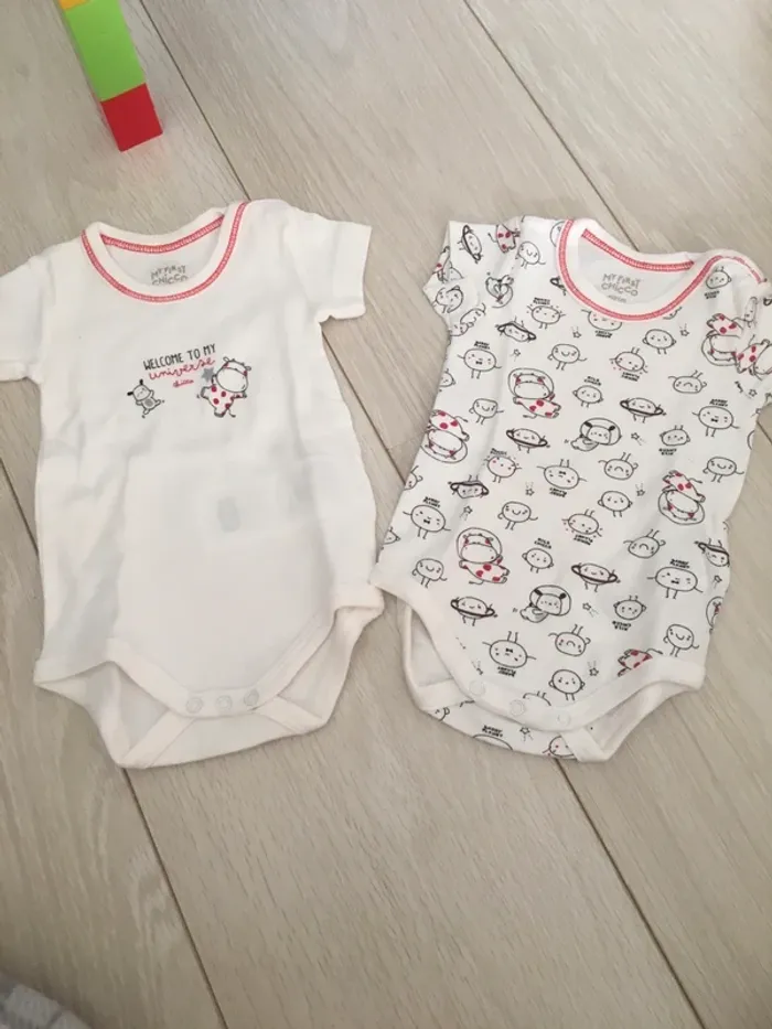 Neufs jamais portés juste lavés Très mignons 1 mois Manches courtes Mixte Je vends d’autres articles bébé et puériculture dans mon dressing, n’hésitez pas à faire un lot 👌🌺☺️