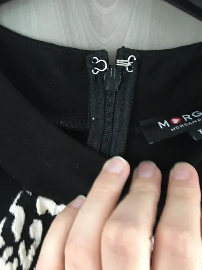 Morgan Taille S Il est noté XS mais c’est plutôt du S, à l’époque où je la portais je faisais du 36, je n’ai jamais fait du 34. Parfait état, très peu portée, comme neuve 👌 Noire et écru Sur le décolleté il y a une ouverture de part et d’autre, cf. Photo Très féminine, élégante et originale Se porte aussi l’hiver, avec des bottines , une petite veste par dessus et éventuellement un sous pull sous la robe ! Je vends d’autres robes dans mon dressing, réduction sur les lots 👍 Envoi rapide et soigné 👌🌺