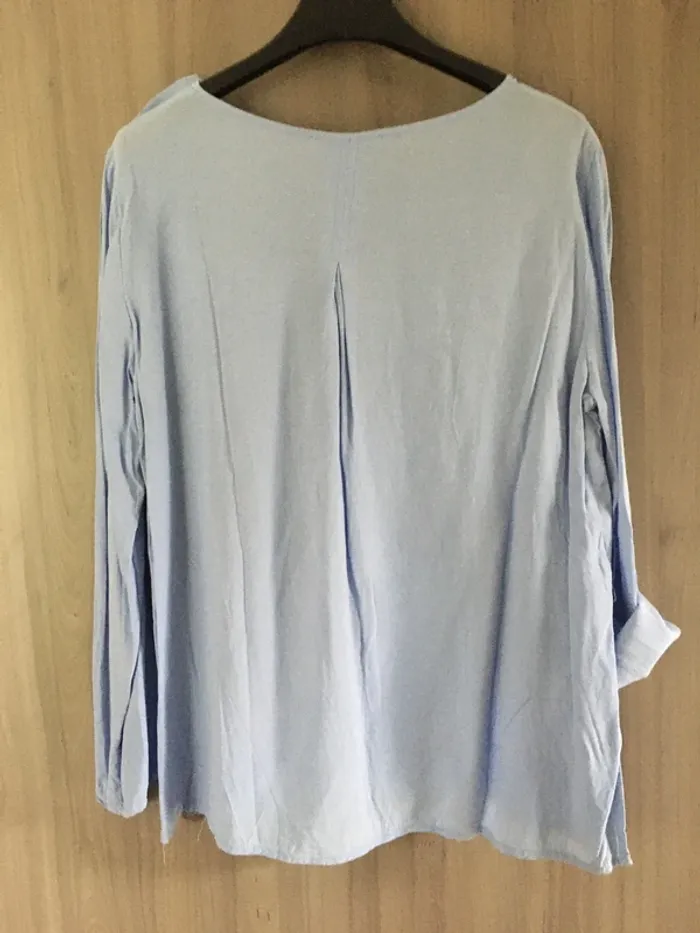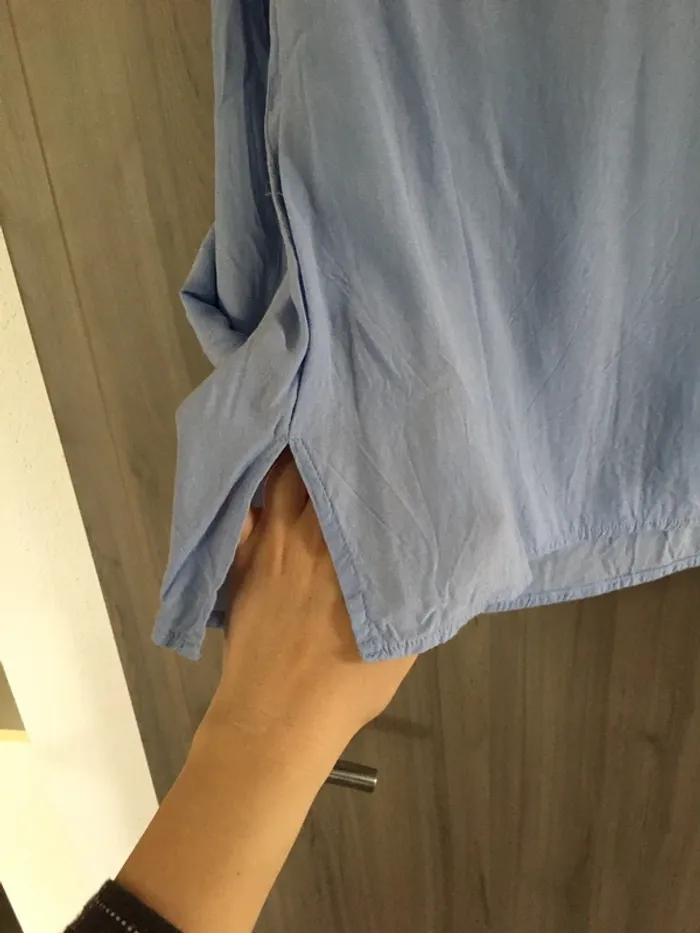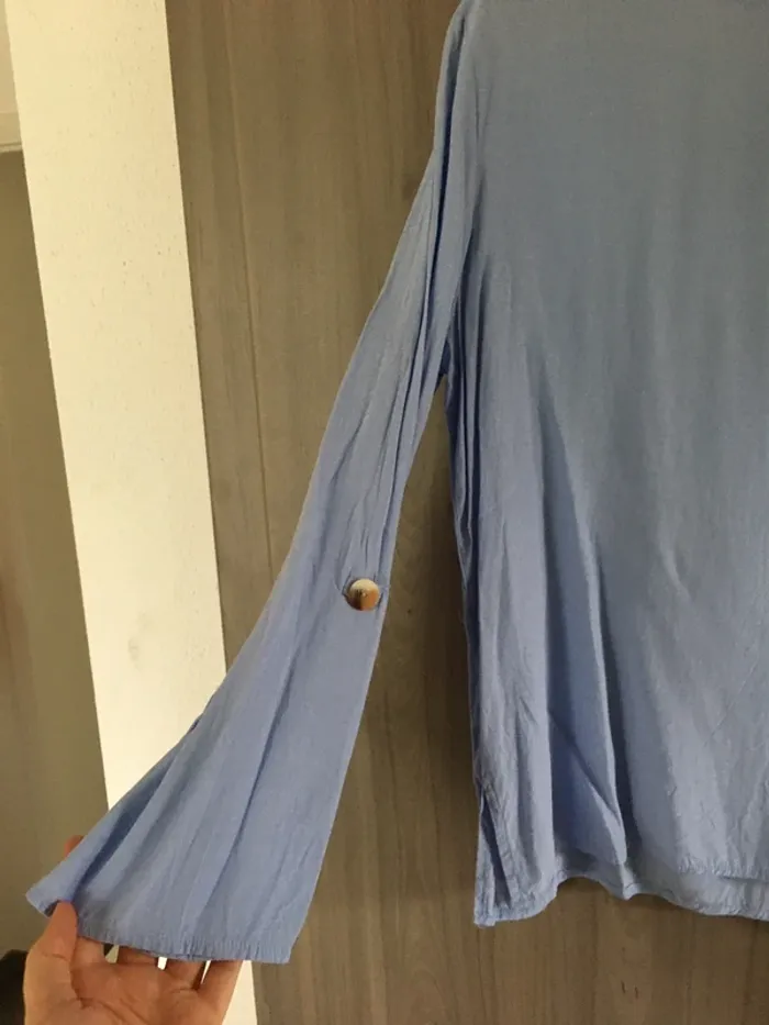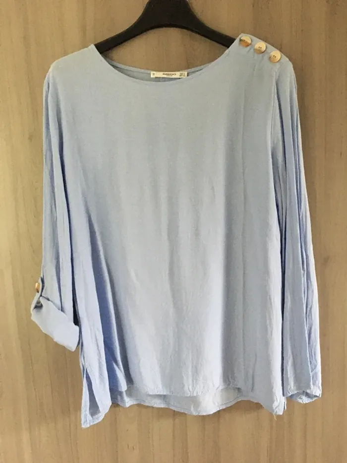 Mango Taille 36 Bleu ciel Manches longues ou 3/4, il y a un bouton pour les retrousser Bouton sur l’épaule Pli dans le dos Fente sur les côtés Parfait état, il faut la repasser Souple et légère c’est un régal à porter Idéal printemps été 🌼 Se porte long ou dans un pantalon ou une jupe 👍 Je vends de nombreux chemisiers dans mon dressing, réductions sur les lots 👍 Envoi rapide et soigné 🌺👌