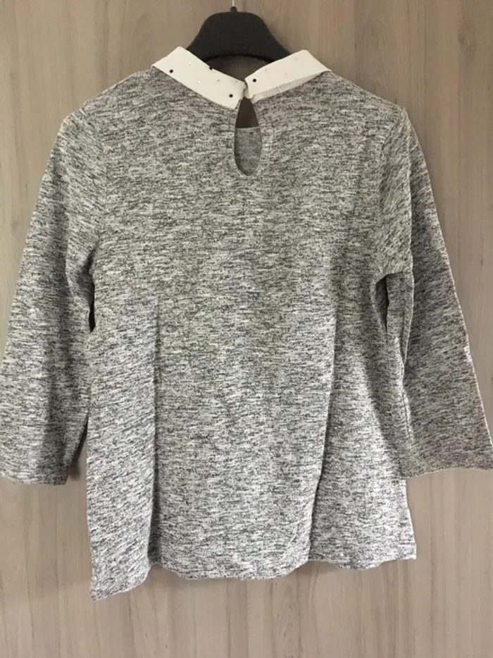 Top gris manche 3/4 avec joli col T.S - photo numéro 2