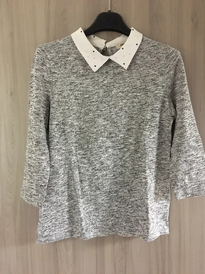 Top gris manche 3/4 avec joli col T.S - photo numéro 1