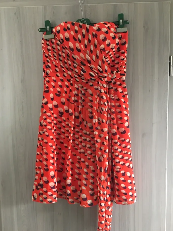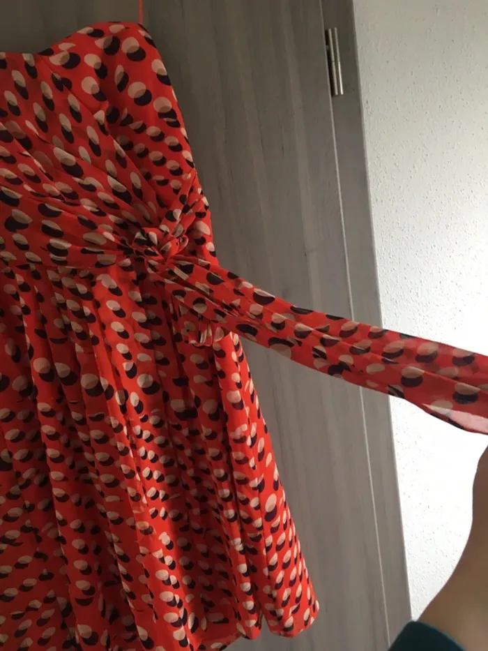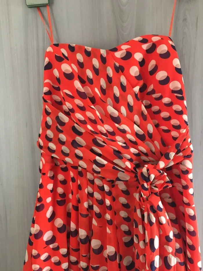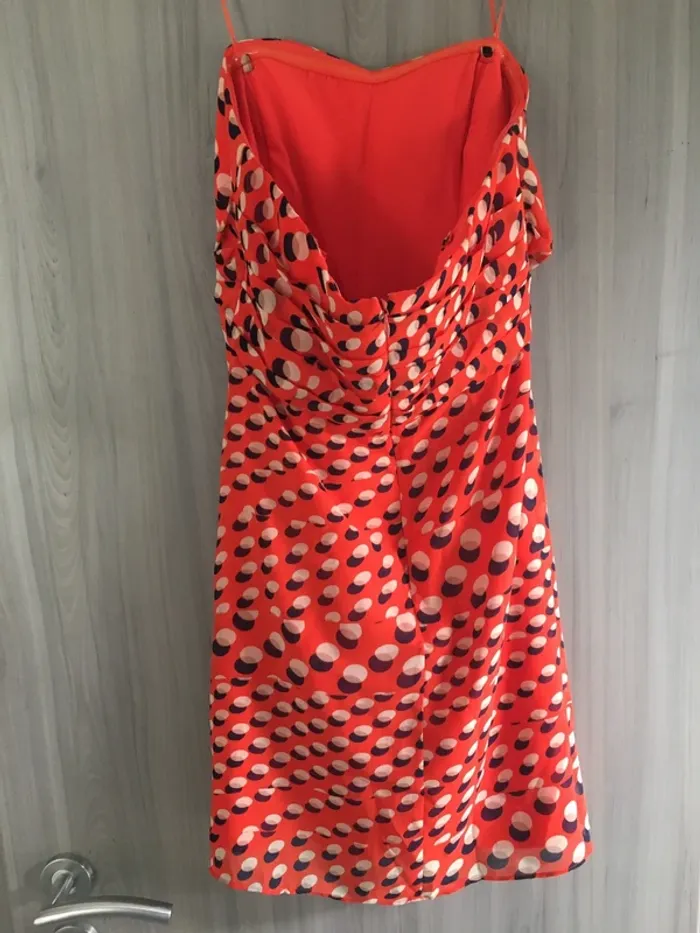 Taille 38 Manoukian Parfait état quasi neuve ! Motifs vintages Rouge corail et ronds bleu marine et beige Fluide Courte Se porte en bustier ou avec les fines bretelles prévues avec (même tissu que celui de la robe) Silicone sur la partie bustier pour aider au maintien sans les bretelles cf. Photo Drapé sur le bustier Joli noeud sur le côté au niveau de la poitrine. Super matière, très qualitative Idéal pour la belle saison qui arrive et pour les belles occasions du printemps : mariage, baptême, communion ou autre soirée tout simplement. Je vends d’autre accessoires dans mon dressing qui iraient très bien avec : escarpins, bijoux, sac pochette… vous pouvez vous concocter une tenue complète dans mon dressing ☺️ Je vends d’autres tenues pour cérémonie dans mon dressing, réduction sur les lots 👍 Envoi rapide et soigné 👌🌺