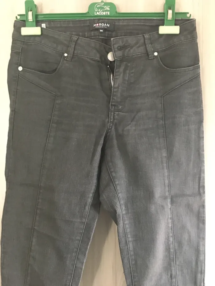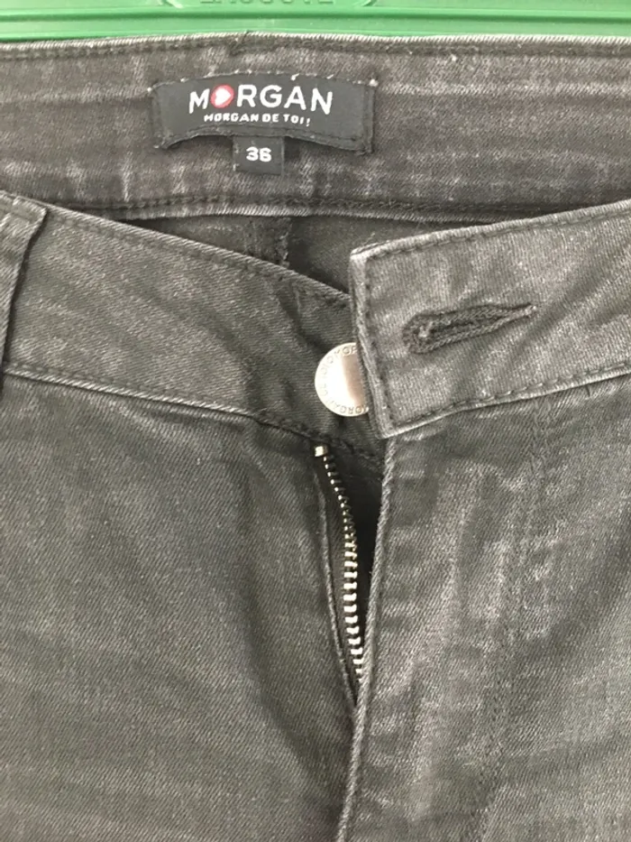Morgan Coupe slim Taille 36 Noir delavé Attention la broche au dos du pantalon se décroche, il faudra soit l’enlever complètement soit la recoudre, ou laisser comme ça, avec une ceinture par dessus on ne voit rien comme c’est au niveau d’un passant 👍 cf. Photo! D’où prix bas Bon état Je vends d’autres pantalons dans mon dressing, de même marque et de marques différentes , réduction sur les lots 👍 Envoi rapide et soigné 👌🌺