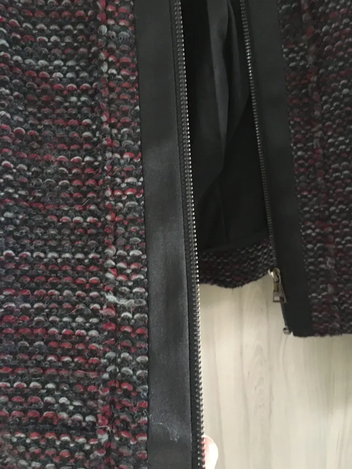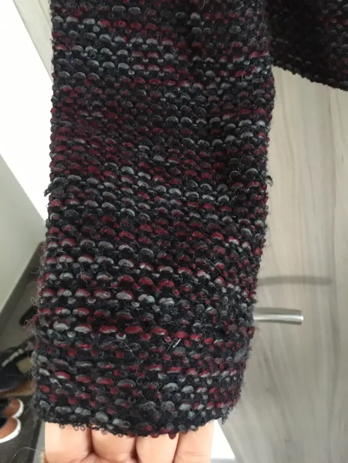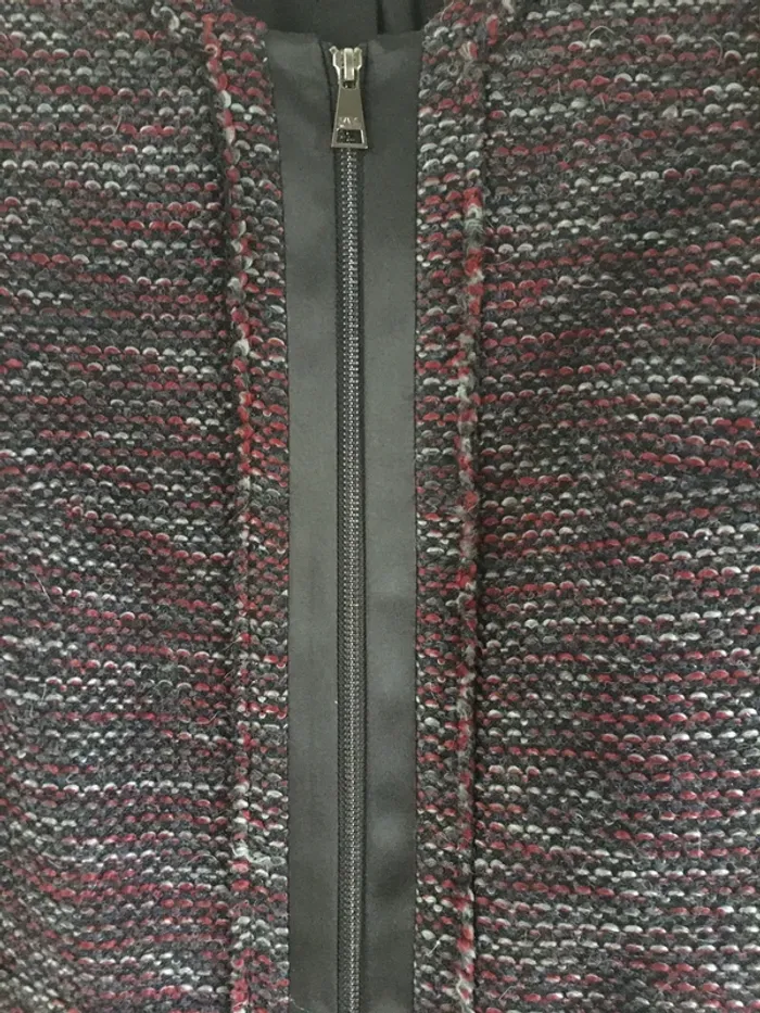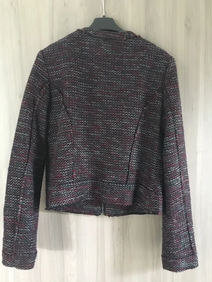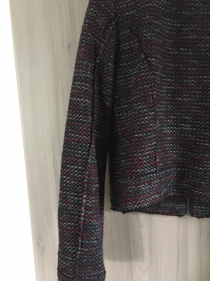 Quasi neuve, portée 1 fois, très belle, aucun défaut Taille 38 Karl Lagarfeld Courte Fermeture éclair Couleur chinée rouge foncé, gris et bleu marine Composition de la veste en photo Très jolie en tailleur pour une tenue habillée, ou sur un jeans pour un look plus cool Je vends d’autres vestes dans mon dressing, réduction sur les lots 👍 Envoi rapide et soigné 🌺👌