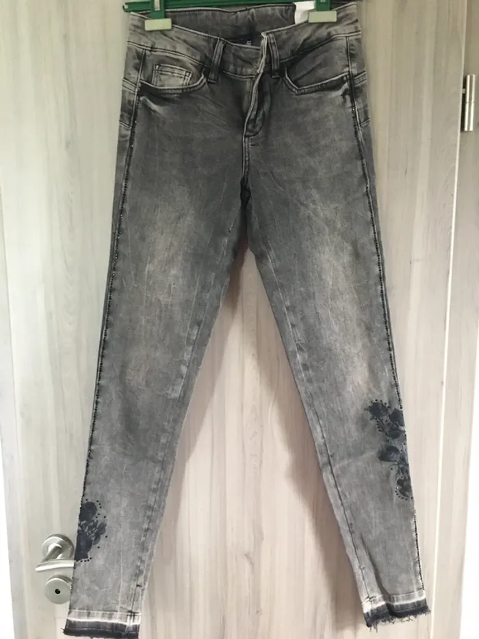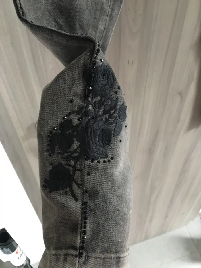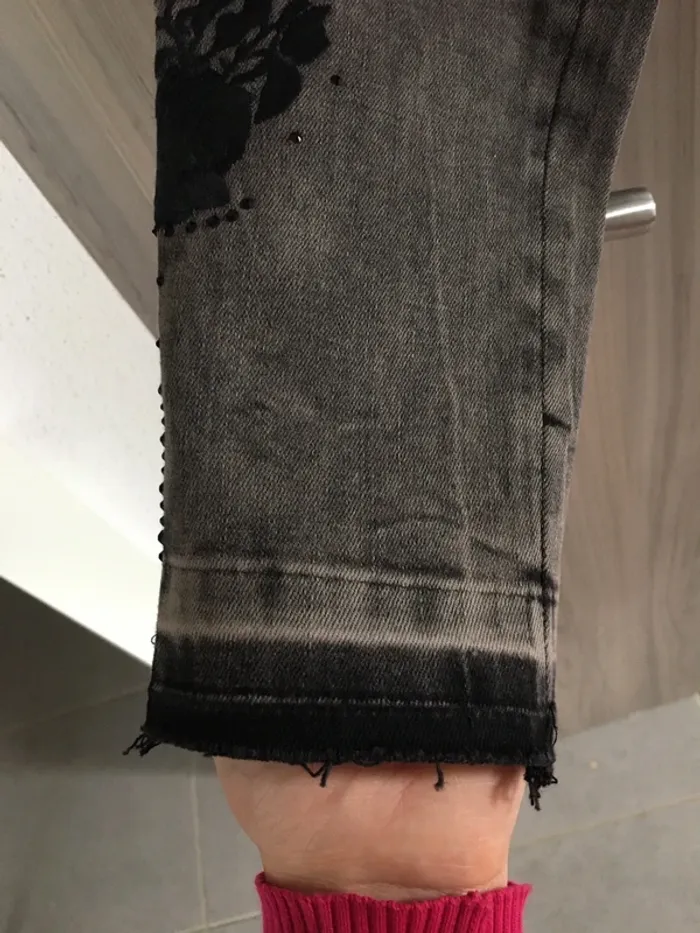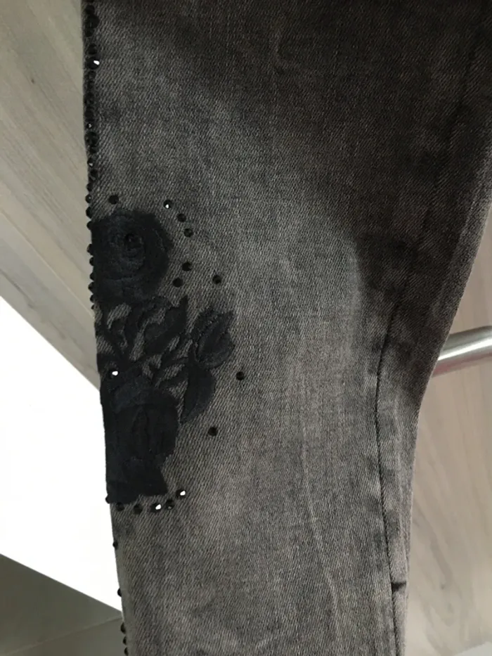Neuf Coupe slim Très tendance et original! Très féminin avec le motif fleur sur le mollet Plein de détails cf. Photos Petites franges sur les chevilles Des pierres noires brillantes sur toute la longueur du pantalon 👌🌺 Noir-gris délavé Liu Jo Taille 36 D’autres articles de la marque dans mon dressing 👍😉