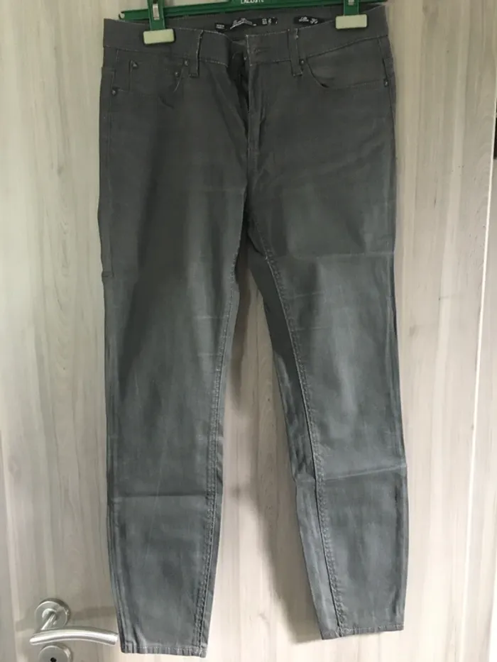 Taille 38 TBE Zara Pantalon 7-8 Effet huilé Gris Slim J’ai d’autres pantalons dans mon dressing notamment des effets huilés et d’autres marques 👍 Envoi rapide et soigné 👌🌺