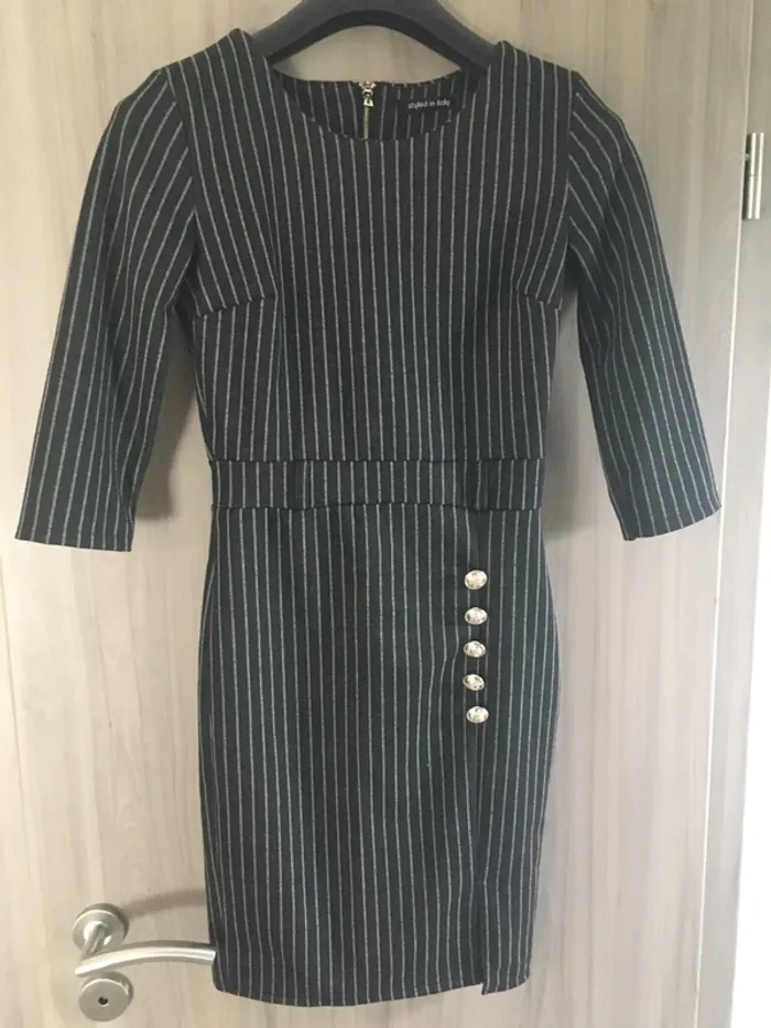 Venue tout droit d’Italie Robe fourreau manches 3/4 Matière chaude Boutons d’ornement sur le bas de la robe! Possibilité de porter une ceinture il y’a les passants Petite fente sur le côté en bas à gauche Moulante Très classe élégante et féminine Idéale pour l’automne qui approche😉 État parfait comme neuf, portée une seule fois
