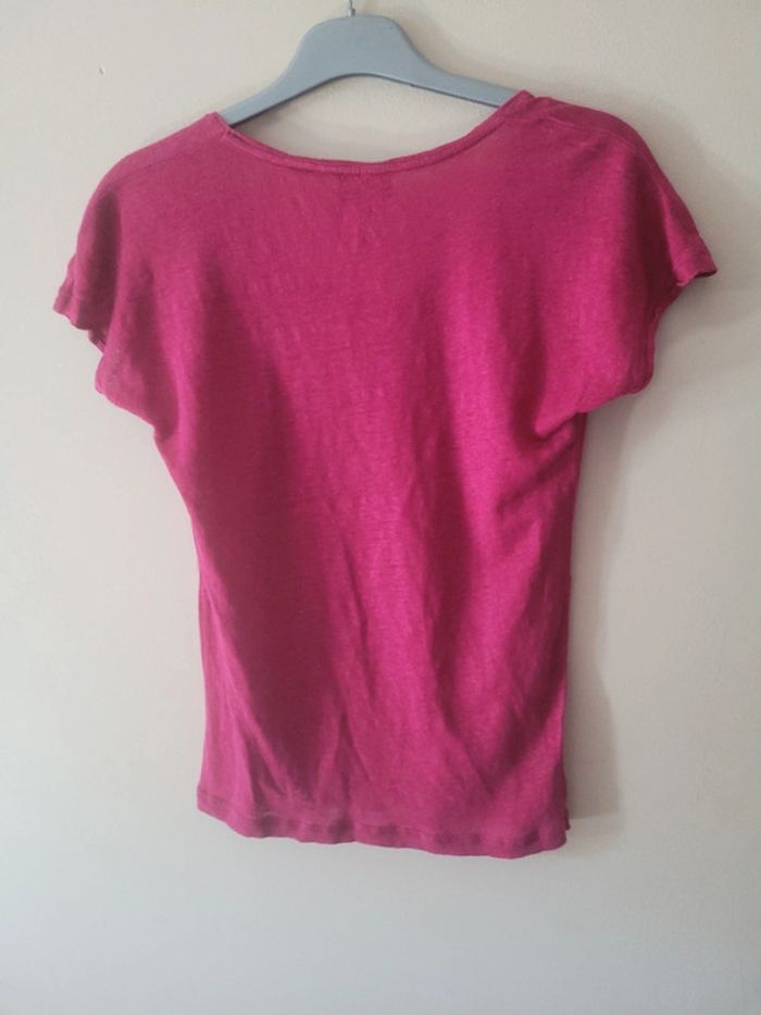 T shirt kookai Taille 0 Étiquette intérieure coupée Très bon état Couleur mauve , la photo est un peu trompeuse pour la couleur Dimensions aisselle à aisselle :46 cm Longueur : 56 cm