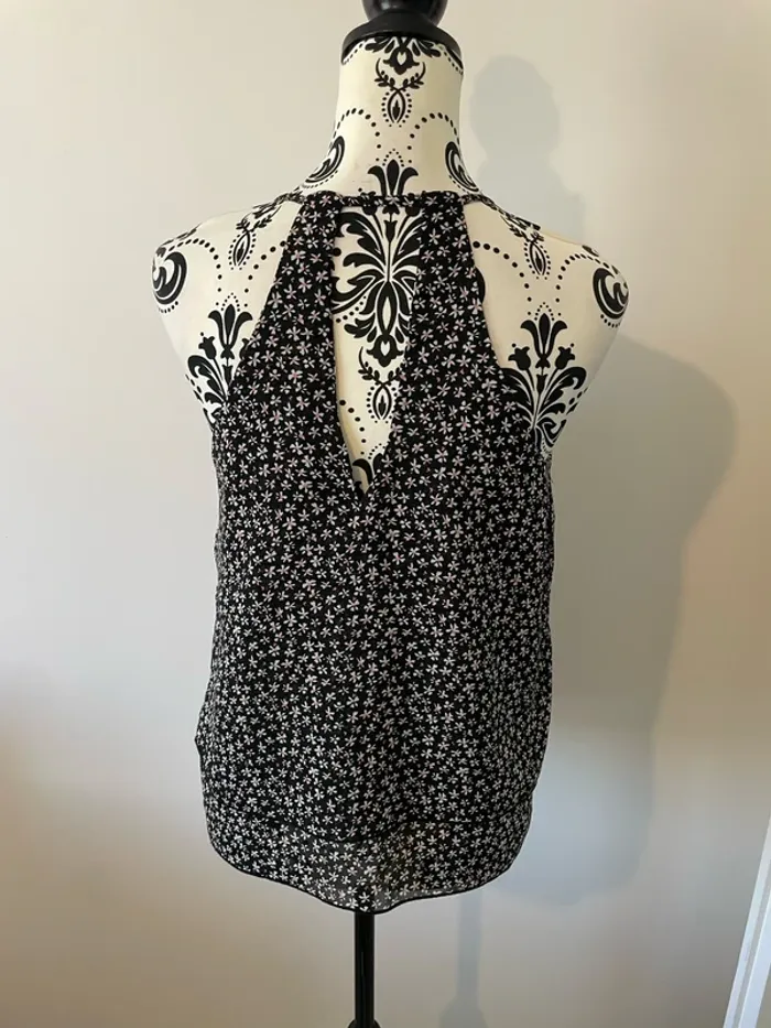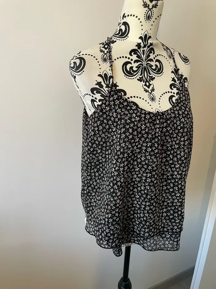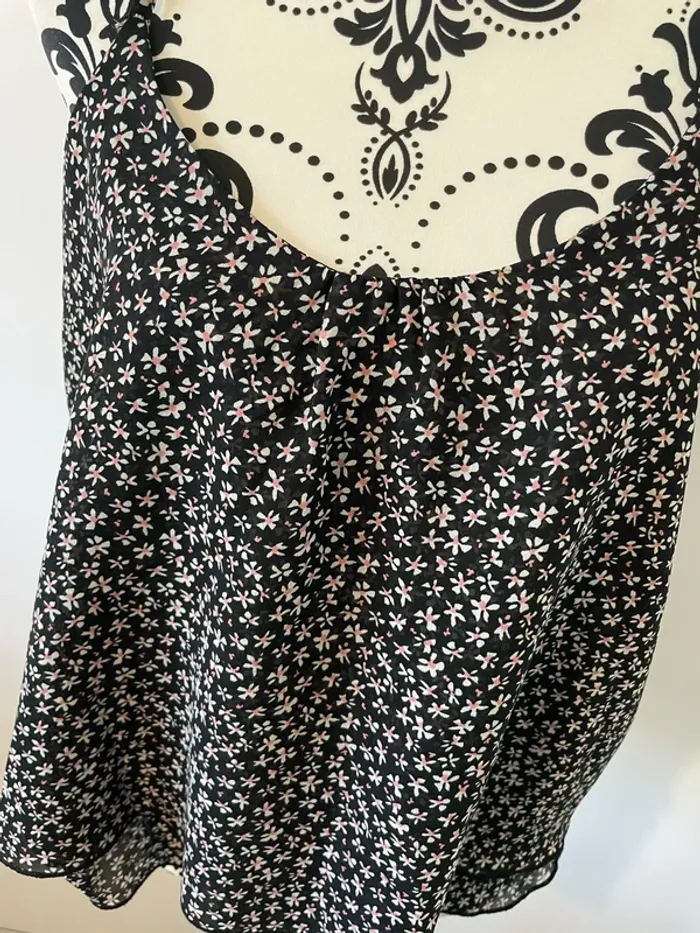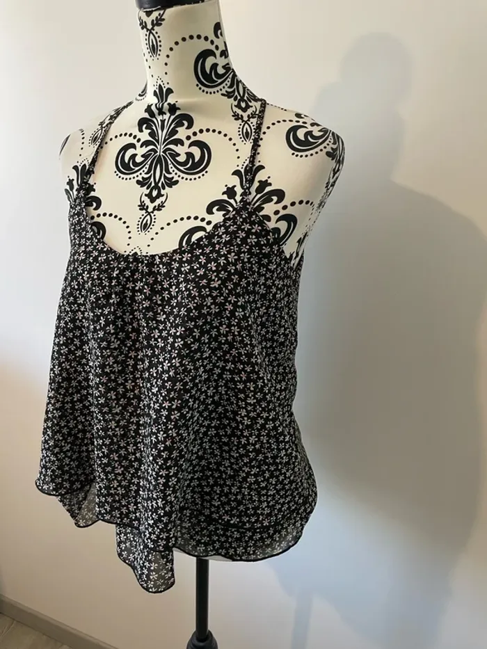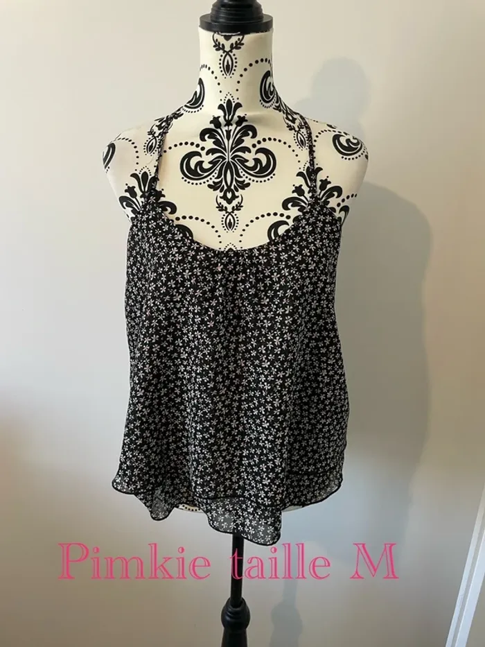 Débardeur fluide Pimkie taille M noir à fleur rose et blanc