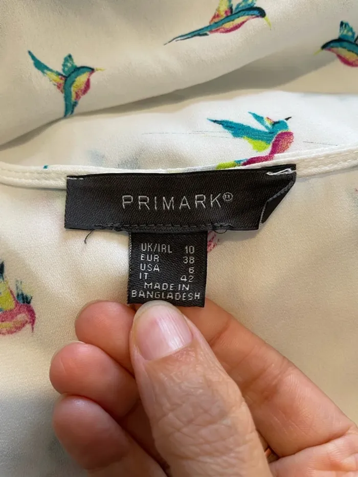 Top blouse débardeur Primark taille 38 blanc motif oiseau multicolore - photo numéro 8